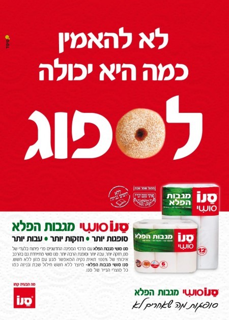 ‘מימד’ הלכו צעד קדימה, והביאו אחלה ‘יציאה’ עם משמעות רב זרועות. מצד אחד, הספוגניה ספוגה בשמן, מאידך, כמה אפשר לספוג, עוד קלוריה ועוד קלוריה, אולי די. אז למה שלא ניתן למגבות הפלא לספוג קצת במקומנו. אהבנו במיוחד את הפשטות המדוייקת נטולת משחקי-המילים.