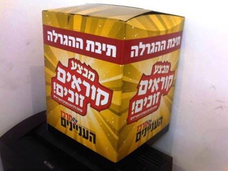 הרעיון מקורי (כן מקורי) ומוצלח, עשיתי סיבוב אמש בבני ברק לצורך קניות לחג המתקרב ובא בצעדי ענק, ואני חייב לציין כי בחנויות רבות בעיר מצאתי את תיבת ההגרלה של מרכז העניינים.