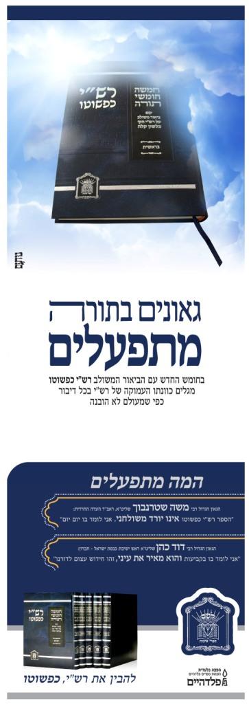 נכון שבמקום להשתחרר לגמרי מהטיזרים הוא פשוט הגדיל אותם לעמוד שלם והצליח להנפיק שלושה עמודים עוקבים לסט חומשים במאה שישים וחמישה שקלים. שזה מטורף. אבל עדיין רואים טאצ’ של עובדים שמגיעים מהלבה הרותחת תמצית כור ההיתוך של היכלות בתי המדרש וחצרות החסידים.