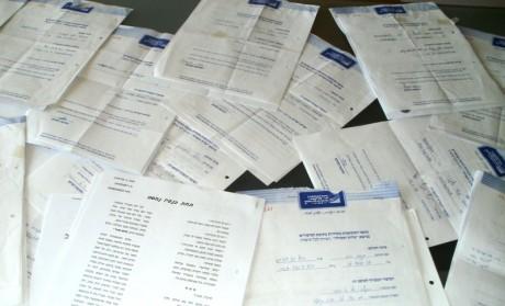 זה התמונות – עשרה דפים מסודרים בפיזור על שולחן ….. שתי ניילוניות בתקריב….. ודפים לא מזוהים בכתב יד … יפה