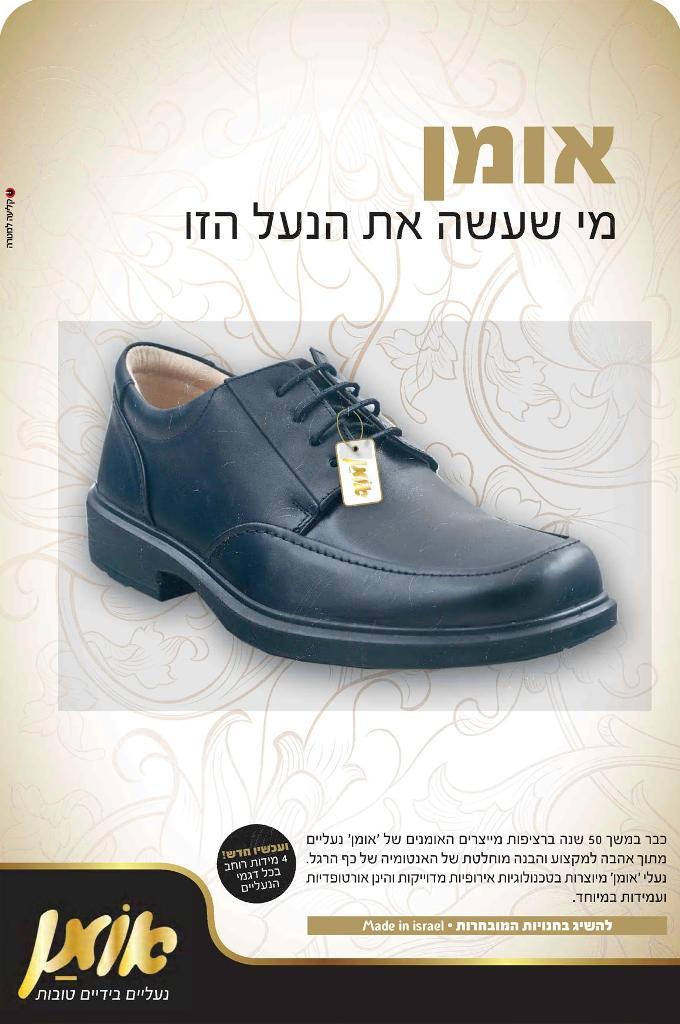 אמרו לי שחברת נעלי אומן היא מותג ידוע ומוכר בציבור החסידי, אני אישית לא שמעתי עליהם ואל תשאלו אותי למה. הני וואי, בעת שיטוטי בפורום מנהלים של ‘המודיע’ (היה חביב), מצאתי את הדוכן של החברה הזאת. מעבר לגימיק החביב – בדיקת אורטופדיה חינם לכל מנהל – מסתבר גם שתקציב הפרסום שלהם הגיע ממש לא מזמן למשרד הפרסום ‘קליעה למטרה’. פול הצלוחעס.