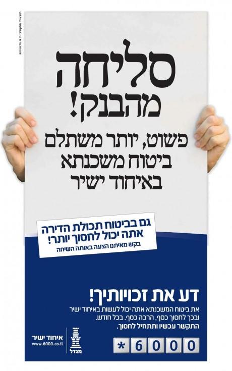 כבר הרבה זמן שלא היה כאן פרינט ראוי לשמו. בעיצומם של ימי הרחמים יצאה חברת הביטוח ‘איחוד ישיר’ בקמפיין סליחות חמוד, אותו תוכלו לראות בעיקר על לוחות המודעות ותחנות האוטובוס. כאן המקום לציין לשבח את אחידות הקונספט שעושים ‘תוצאות אפקטיביות’ ל’מגדל’ כבר תקופה די ארוכה.