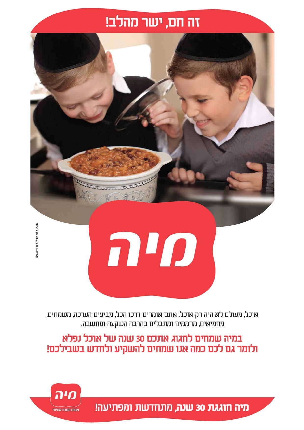 נו מיילא ואני חושב שהפרסום בציבור החרדי לעומת הפרסום החילוני שאין לו גבולות ואולי בגלל זה הוא מקורי ומפתיע ומעניין שכיף רק לראות את הפרסומת לעומת משרדי הפרסום החרדים שכל מודעותם דומות והם לא שמעו על כמו שפרצופיהם שונים כך מודעתם כל עיתון אתה רואה שני אברכים שני ילדים תמיד יפי בלורית או הבחור המסכן מהדואר שיש לו פיצול אישיות כל עיתון הוא מחליף את השקפתו יום חרדי יום מזרוחניק יום חילוני ולכן חושב אני שכדאי שיפנימו שהציבור החרדי לא מפגר בואו תפתיעו אותנו כל תלמיד שנה א יכול להבין ששני ילדים מעל סיר מראה על חמימות על בתיות אבל האם אפשר להפתיע לעניין לחדש ליצור להתוות דרך התשובה היא כןןןןןןןןןןןןןןןן