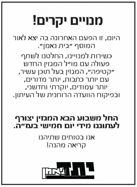 בית של קטיפה: מוסף הנשים של יתד נאמן – ‘בית נאמן’ יצא היום בפעם האחרונה. קבלו את שער העיתון, עמוד ההתנצלות, ועמוד ההספד: