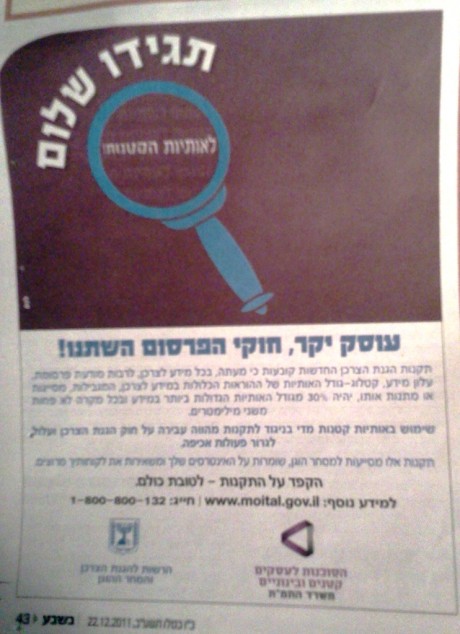 המכרז הלאומי: אתר אייס מדווח כי קופת חולים לאומית יוצאת במכרז על תקציב הפרסום של הקופה במגזר החרדי. לאחר ששלושת משרדי הפרסום הגדולים מחזיקים כולם בקופות המתחרות, מסתבר כי המשרדים האפשריים שיתחרו על התקציב הם: ‘מימד’; ‘תוצאות אפקטיביות’, שכבר התחרה במכרז הקודם והפסיד; ומשרד הפרסום ‘בראשית’ של מוטי קוטיינר שטיפל בתקציב עוד בהיותו בטריו. אנחנו מהמרים על בראשית, אבל בל נקדים את המאוחר. אנחנו מאחלים לכולם בהצלחה.