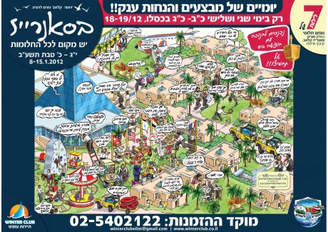 כבר כמה שנים שחברת התיירות ‘וינטר קלאב’ מארגנת חופשות במג’יק סאנרייז קלאב בקיבוץ אילות, בעיקר בתקופת החורף. לאחרונה הם יצאו בפרינט מצוייר ומשובב עין, פרי מכחולו של מוטי הלר. אין ספק, זהו פרסום מעניין שתופס את העין.