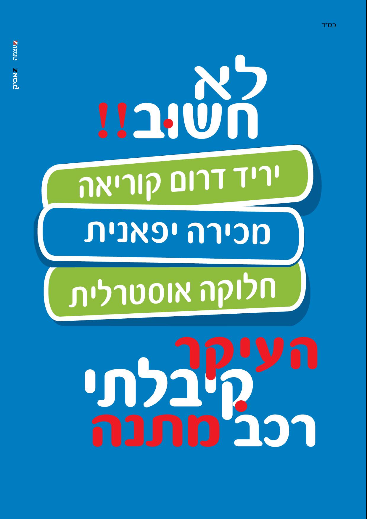 לי המודעה הזו עושה בלגן בעיניים. יותר מידי צבעים, ומסר מאד לא אמיתי.
