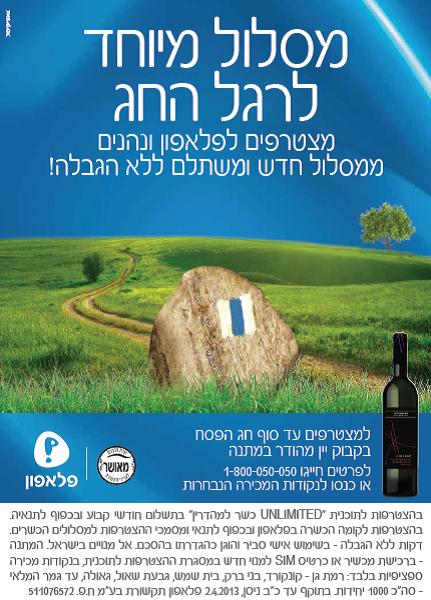 חברת פלאפון מפתה את הלקוחות החרדים בבקבוק יין “מהודר” לחג וכמעט רבע מהמודעה מוקדשת לכוכבים, תנאים והגבלות.