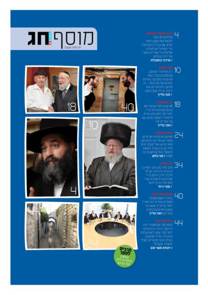 המוסף הפעם כולל 7 כתבות, ועוד כמה כתבות יח”צ וסיפורים לקראת סופו. העיתון מפתיע עם ראיון בלעדי עם הגר”י אבוחצירא מאשדוד במלואת 30 שנה לפטירת אביו הבבא מאיר (ראיון שעליו רבו עם שאר השבועונים), וכן פרופיל (תמוה מעט) ושיחה עם האדמו”ר מסאסוב וסיפורה של קרית סאסוב במלאות 50 שנה לייסודה. אומרים שאת מספר החסידים ניתן לספור על אצבעות יד קטועה.