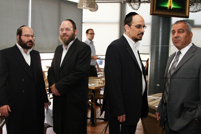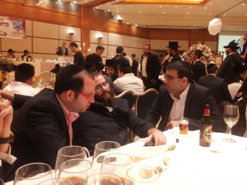 יוסי צלניקר נתפס בעדשת צלם הפפראצי משוחח עם עויזר דרוק ואיתי גדסי באירוע קביעת מזוזות ופתיחת בית המתנדב של איחוד הצלה בבני ברק.