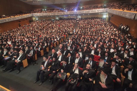 אלפי בני התורה השתתפו ביום חמישי בערב במעמד האדיר לכבודה של תורה, לזכר רבנו מרן הגרי”ש אלישיב זצוק”ל. האירוע נערך בבנייני האומה בראשות מרן הגר”ש אויערבך שליט”א, שנכנס לאולם לקול שירת “ימים על ימי מלך תוסיף”. מרן הגר”ש אויערבך נשא את המשא המרכזי ובדבריו עורר על הגזירות הנוראות ובפרט על גזירת הגיוס. לגלריה מלאה לחצו על הקישור [סיקור באתר כיכר השבת].