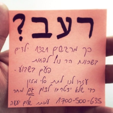 פתק זהה, בכתב יד, מופץ בקבוצת הווטסאפ השונות ולא בגלל שמישהו החליט שכדאי לדחוף את “שלום יעשה” אלא מפני שהוא נוגע בדיוק בעצב החשוף של הצום: הרעב.