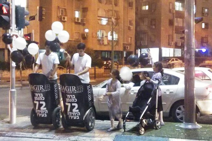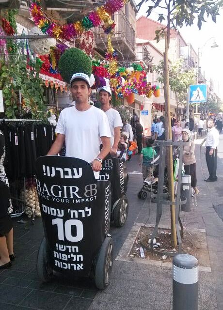 יומיים לפני חג הסוכות שעבר עלינו לטובה, מקווים שגם עליכם, הסתובבו בחורים על סגוואי ממותגים ופרסמו את ‘בגיר’ בבני ברק ובירושלים. בבני ברק נכתב על הסגוואי “בגיר היחידה בעיר”, ובירושלים “עברנו לרחוב עמוס 10”. מקדמי המכירות שנהנו מתשומת לב רבה, חילקו שוברי הנחה בלעדיים לחנויות בגיר.