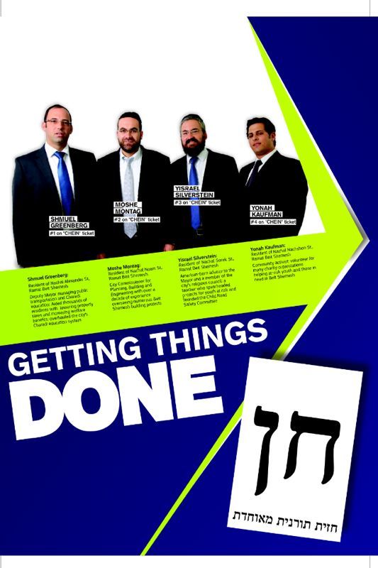 ‘דגל התורה’ בראשות שמוליק גרינברג סגן ראש העיר הנמרץ יחד עם עמיתו משה (”הקבלן”) מונטג גייסו את החבר’ה המוכשרים של ‘מילר פוינט’ למערכה על הקול הליטאי של בית שמש כאשר הפעם המשימה קשה מתמיד. גם צריך לבנות מותג חדש וגם להתמודד עם העובדה שהאייקון נמצא אצל האגודאים.