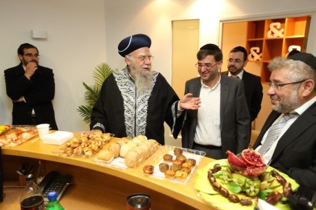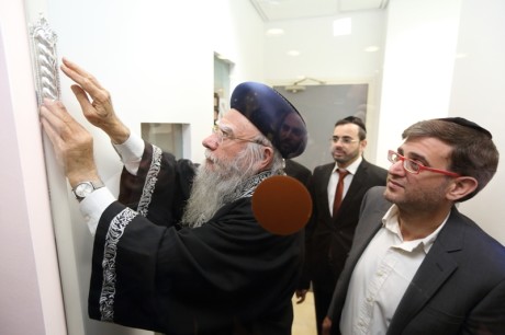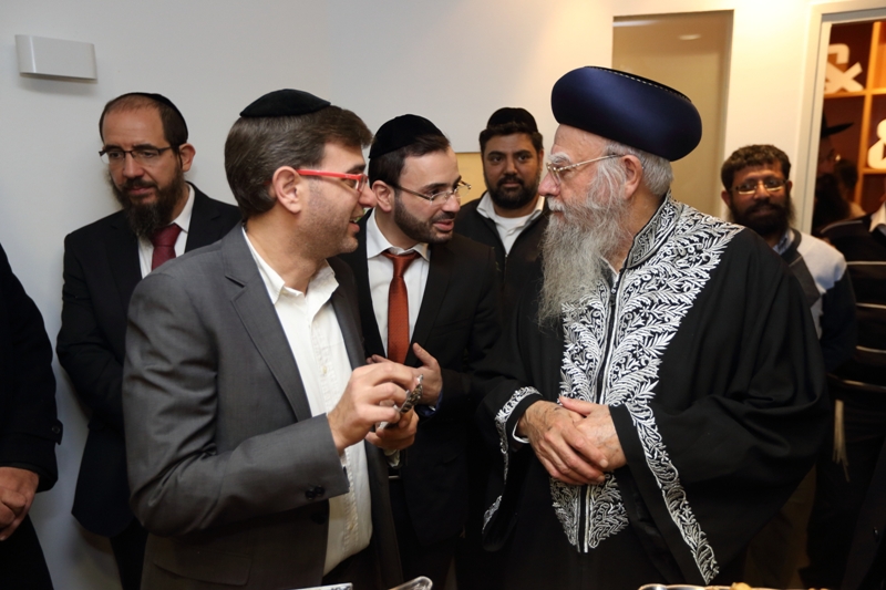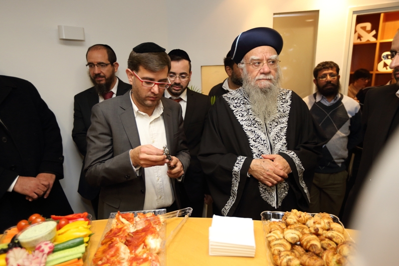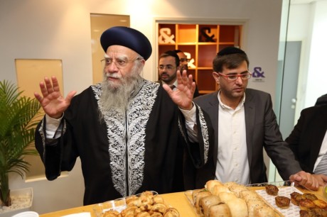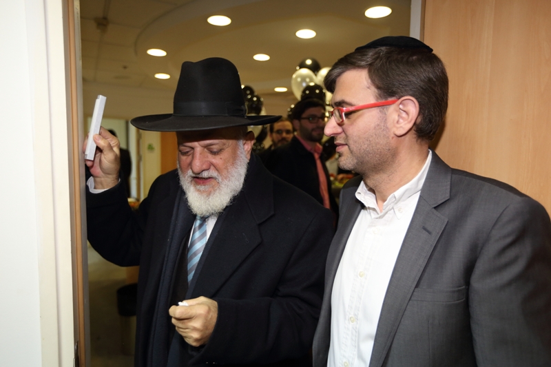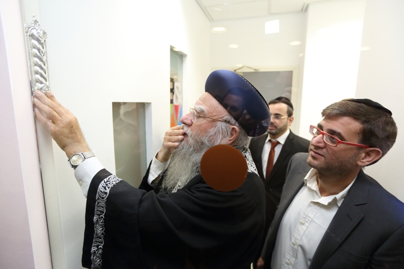 הראשון לציון והרב הראשי לשעבר, הגאון רבי אליהו בקשי דורון שליט”א, התכבד בקביעת המזוזה בכניסה הראשית למשרד. בדברי ברכה שנשא במקום, סיפר כי הוא מכיר את בעלי המשרד מזה שנים ארוכות. “לפני שנים רבות, חיפשנו איש מקצוע שיעשה פרוספקטים ועבודות פרסום עבור מוסדות ‘בניין אב’ בירושלים, ומצאנו את בעל המשרד הזה, שמעון ממשפחת רווח, המשלב מקצועיות נדירה עם ‘הצנע לכת’. זו מעלה חשובה מאוד”.
