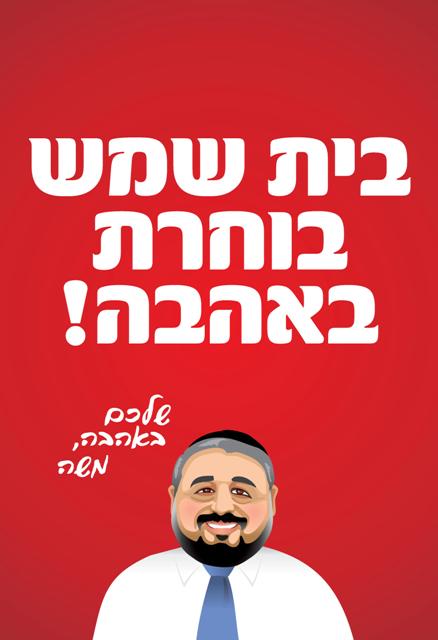הקמפיין האוהב של משה אבוטבול, הפונה לקהל יעד חילוני, כבר צובע את השכונות המעורבות בבית שמש. אבוטבול, המאויר בחינניות רבה, מזכיר את הקמפיין של פרוש לעיריית ירושלים ומציג את אהבתו לכולם כמסר מרכזי.