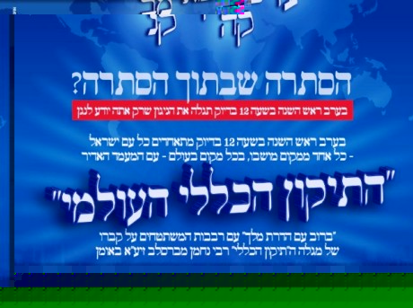 המקורבים לברסלב שעקבו אחרי האותיות השונות יכלו להבחין כי מדובר בפרקי תהילים מתוך התיקון הכללי. כעת מתפרסמת חוברת הסבר על אודות התיקון הכללי. הקמפיין נועד לצרף עוד אנשים לאמירת “התיקון הכללי העולמי” בחצות היום של ערב ראש השנה. אתם בעניין?
