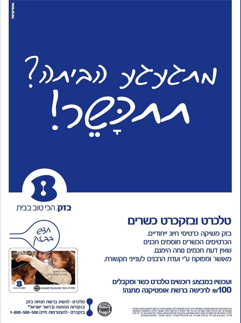 רעיון הטלכרט הכשר הוא רעיון ע-נ-ק. ולא אינני קשור לשום משרד פרסום ולמשו שדומה לזה. פשוט ראיתי את הפרסום, והתלהבתי מהרעיון הגאוני. שמטיב עם בחורי הישבות למען רוגע ההורים.