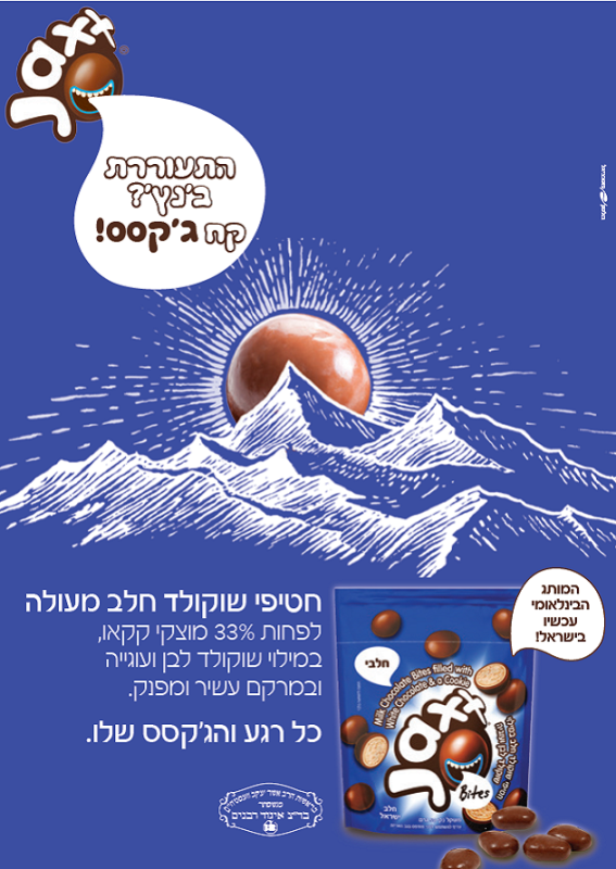 הוא החל במיני מודעות מתחלפות שהופיעו בצבעי שלשת מוצריו, הסגול והכחול החלביים והצהוב הפרווה, ויצרו אוירה קלילה ומשעשעת סביב הנושאים השונים שהועלו: החמות שמגיעה לשבת, קריעת ים סוך של השידוכים, קו 402 ואפילו הפקק בגאולה. הכל עולה על השולחן באמצעות החטיף הכדורי שמתלבש על הסיטואציה בטוב טעם. אם זה הנץ שחייבים להספיק, הוא ישמש ככדור שמש שמבצבצת, אם זה הפקק המשתרך, הכדורים ישובצו בתוך צבעי רמזור מתחלפים ואם זו השויגער שבדרך, הם ימצאו מקומם ככדורי חמין מהבילים המתבשלים לקראתה.
