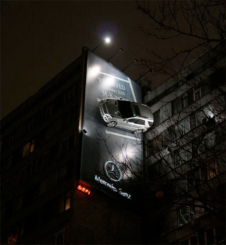 צוות השיווק של מרצדס הצליח לשים מכונית אמתית על שלט חוצות.