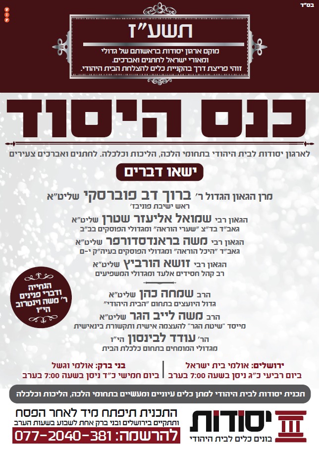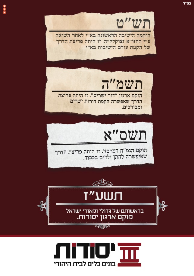 לקוח נוסף הוא ארגון “יסודות” שבלט מאוד עם טיזר מעניין על מהפכות וציוני דרך במגזר החרדי. השבוע כבר גילינו כי מדובר בארגון חדש המציע סדרת קורסים לחתנים ואברכים צעירים. הקמפיין הרחב מבשר על לידתו של הארגון עליו יכריזו בכנס היסוד שייערך מיד לאחר חג הפסח. האם הארגון ישקיע דמים מרובים בקמפיינים לאורך השנה? נחיה ונראה.