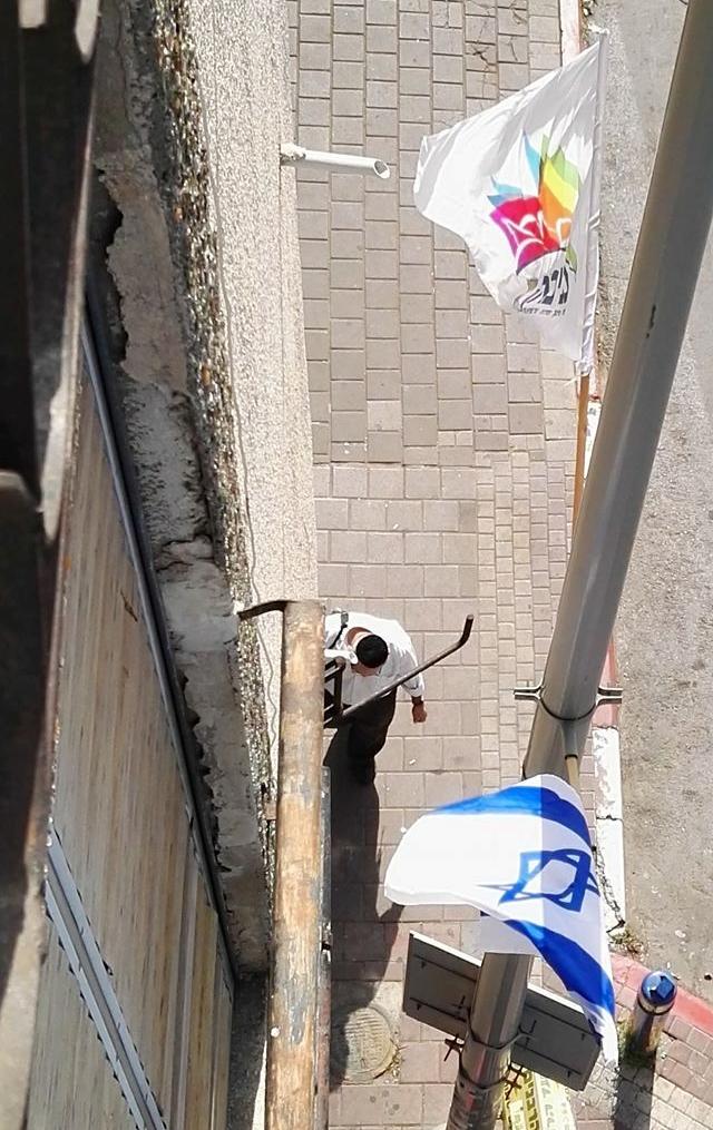 בתמונה: דגל ישראל לצד דגל עיריית בני ברק וחרדי, תמונה שצילמתי הרגע מחלון ביתי…