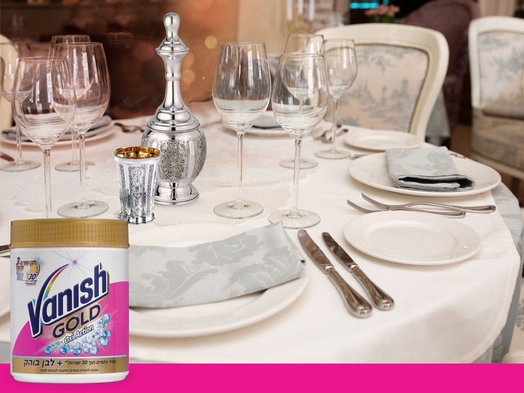 בווניש קליה מזמינים אתכם לשמר את צבעה הלבן של מפת השבת ואף ליהנות ממפה לבנה יותר ב-3 דרגות! כל מה שצריך לעשות הוא להוסיף כף אבקת וניש גולד לכביסה לבנה לכל מכונה והכביסה תצא לבנה יותר ב-3 דרגות.