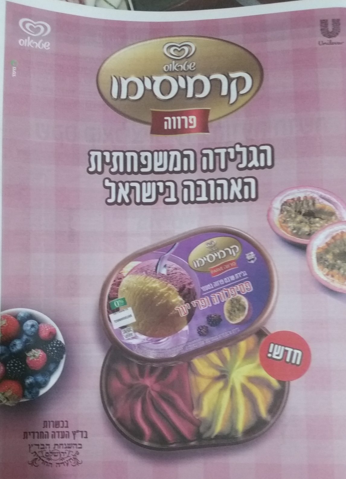 הקמפיין של נסטלה הינו קמפיין גלידות שגרתי. מודעה מעוצבת כדבעי ומרשימה עם המוצר באופן בולט וטעים. תחת הכותרת ‘קרמיסימו הגלידה המשפחתית האהובה בישראל’ (בלי קישור למחקר או סקר שמאשש את הקביעה הלא ברורה הזו) ניצבת לה הגלידה, פרווה או חלבית עם טעמים חדשים שנוספו השנה.