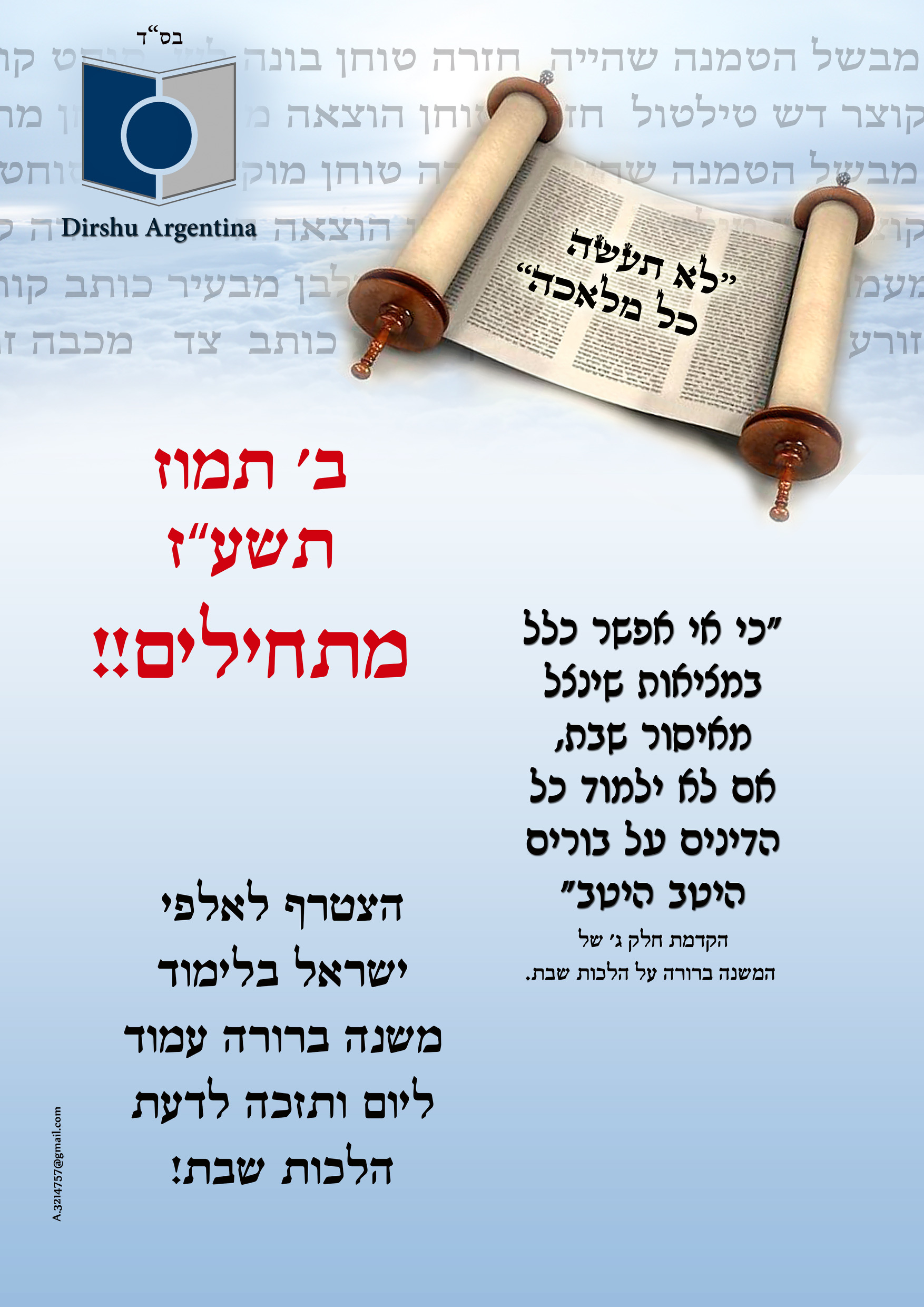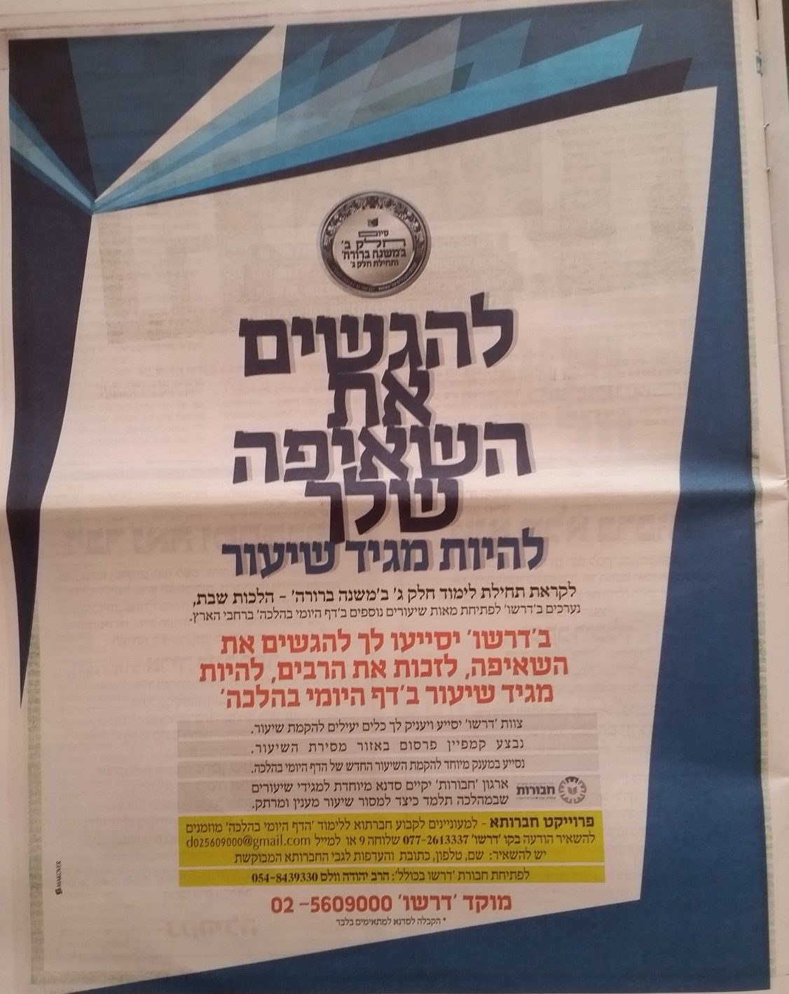לפני כשבועיים וחצי הוא עלה גם בישראל בעיתוי מיוחד, שנבחר בקפידה לקראת תחילת הלימוד של הלכות שבת במסגרת המחזור השני של הדף היומי בהלכה, שנוסד לפני עשר שנים. הלימוד היומי תפס חזק בכל העולם, עד כדי שכיום כבר נפתחים שיעורים באופן עצמאי וקשה להעריך את מספרם המדויק. אלא שהפריצה הגדולה הייתה לפני 7.5 שנים כאשר החל המחזור הראשון של לימוד הלכות שבת, בשל החיבור הטבעי של כל יהודי אליו.