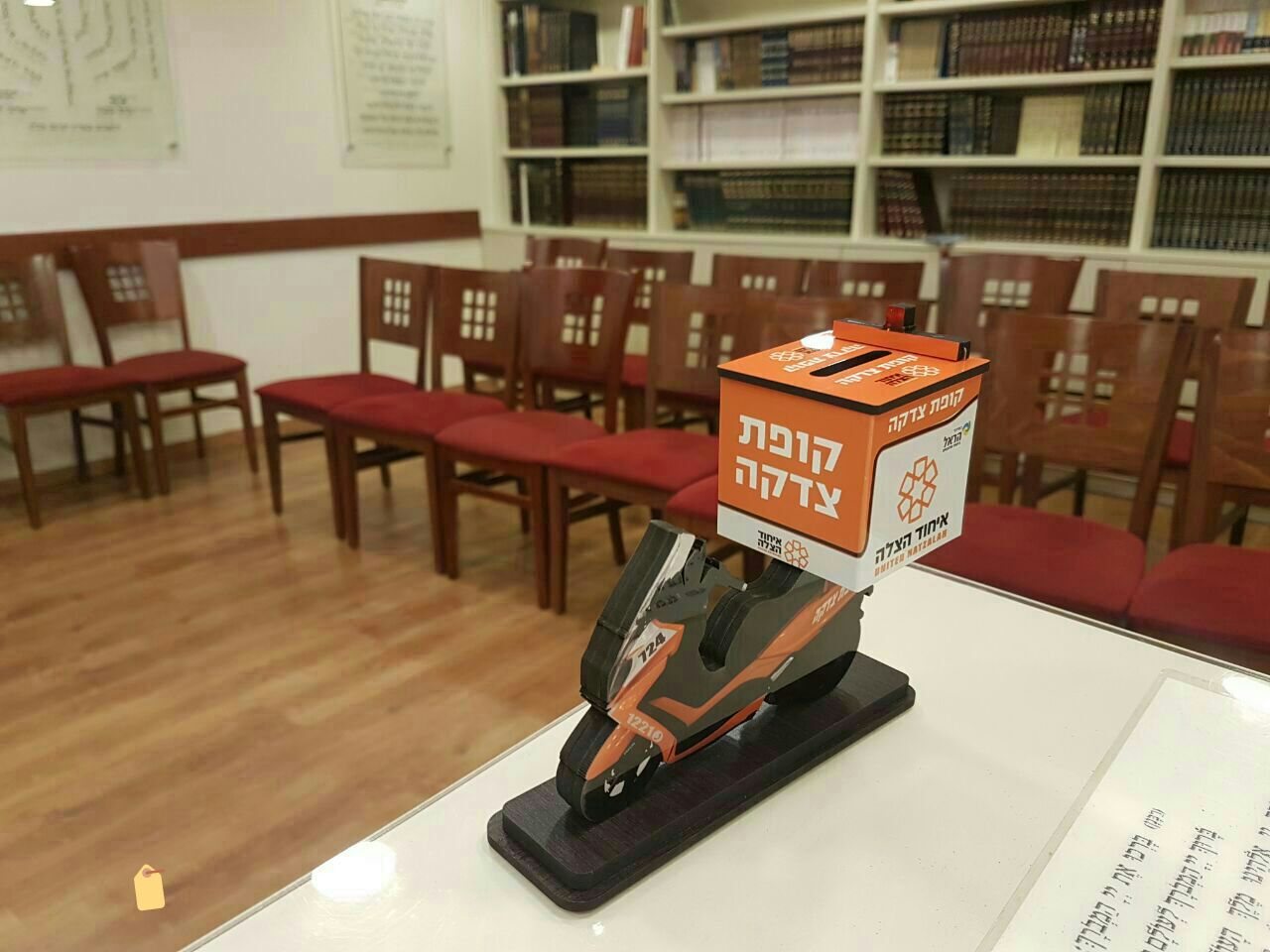 ועוד באיחוד הצלה: קופת צדקה מקורית מצאה את עצמה השבוע בבימה שבבית הכנסת במשכן הכנסת. הקרדיט לשבתאי רפפורט.