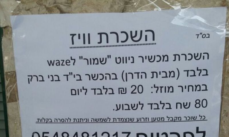יהודי רכש בכמה מאות שקלים מכשיר של הדרן לוויז (וגם פנגו או סלופארק). נו, וביום שהוא נוסע בסובארו אברייכים והוא לא צריך את המכשיר, לא חבל? בטח שחבל. אז מה יהיה? הנה: