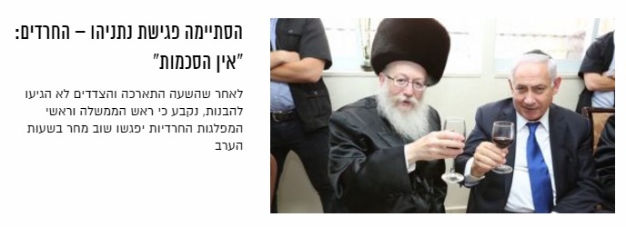 עדכון: העורך התעורר ושינה את הכותרת: “בצל האיומים: החרדים נפגשו עם נתניהו”. אין אזכור על אודות תוצאות הפגישה, כפי המתבקש וכפי שתוכלו למצוא בשאר האתרים. הם רוצים קליקים לתוך הכתבה, אני רוצה ללכת לישון.