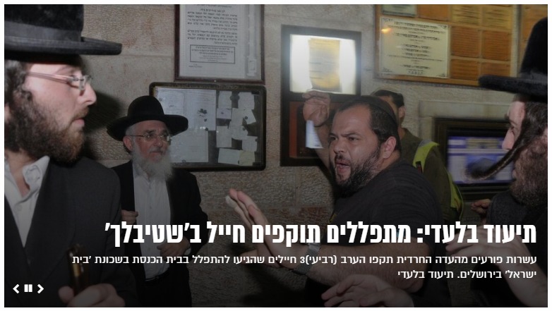 ובכן, אני נכנס לאתר החדש הזה ורואה כותרת ממש טובה: תיעוד בלעדי: מתפללים תוקפים חייל ב’שטיבלך’. אני נכנס לעוד אתר ולעוד אחד (ועוד אחד ועוד אחד) וכולם מסקרים את התקיפה. לפי סימוני הוידאו שבדף הבית, נראה שכל האתרים מפרסמים תוכן לצפייה, כך שה”תיעוד בלעדי” נשמע קצת יומרני פתאום, אבל לא צפיתי בתוכן הכתבות אז לא אוכל לשפוט. התמונה המוצגת באייטם באתר אקטואליק, לדעתי, היא הטובה מכולם.