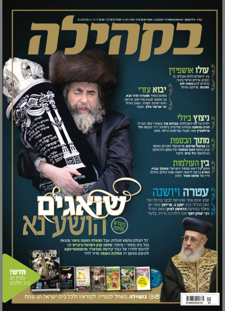 המגזין הזה, בעל השער הלא-רע, הוא המגזין הראשי והחגיגי של ‘בקהילה’ החג הזה. בשער מפציע האדמו”ר מרחמסטריווקא בראיון חג שנתן לעורכי “בקהילה”, אשר נפרס על פני 11 עמו’. הפעם את הכתבה הראשית, אחרי הרבה חגים, לא עושה הרב העיתונאי יעקב בנימין פרידמן, בפרופיל על אחד האדמו”רים או הרבנים, אלא העורכים קוק וגרובייס (מודים, עוד לא קראנו). את השנייה. בל דאגה: ב. פרידמן ממלא את מכסת העמודים הקבועה שלו גם החג הזה. אמנם בכתבה השנייה, הנפרסת על פני 20 עמודים (כפול מכתבת השער), והיא על הראשל”צ הגר”י יוסף, שכמדומה שלא התראיין עד עתה או לפחות ממעט מאד מלהתראיין. כאן גם אפשר למצוא את הסגנון הספרותי היפה שבו הוא כותב.
