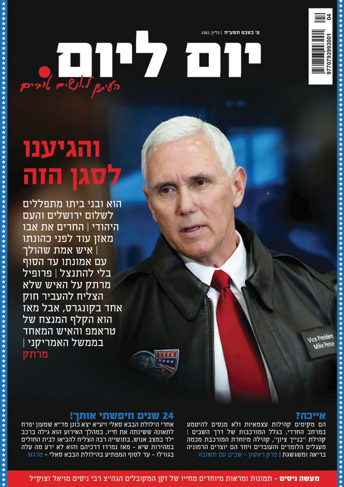 פנס בעין: הנושא הראשון שהעסיק את עיתוננו, הוא ביקורו של סגן נשיא ארה”ב מייק פנס. הסיקור התמקד בשני מישורים, סיקור הביקור עצמו ובמרכזו הנאום בכנסת, ופרופיל לדמותו של פנס. הסיקור הכי קטן היה דווקא במשפחה, שנוהגים להרחיב אפילו בסיפורים קטנים. הפעם הסתפקו בעמוד אחד, וכמובן איזכורים בפרשנויות.