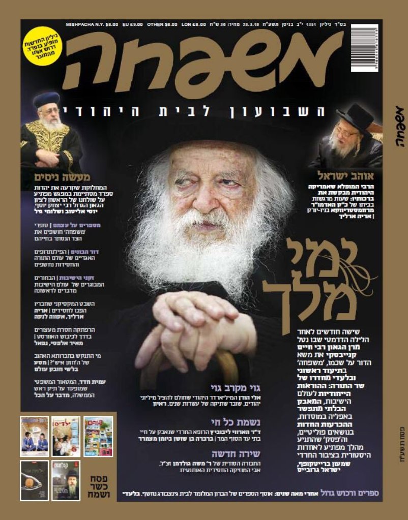 קשה לזכור את מספר הפעמים שהגר”ח הופיע על שערי עיתוני החג השונים. די אם נציין את שער בקהילה תחת הכותרת “בהיכלו” אז הרב פרידמן עשה אצלו יום, ולפחות 4-5 פעמים בעיתוני חג נוספים אחרים. אך התמוה יותר הוא, שאך לפני שנתיים וחצי, בסוכות תשע”ו, הגר”ח הופיע בשער עיתון החג של ‘משפחה’ עצמו… נכון שהפעם הנושא הוא שונה – סיפור ההנהגה שלו בחודשים האחרונים – ונכון שברור שהגר”ח על שער עיתון חג “מוכר” הרבה יותר מכל רב אחר שיופיע על השער, במיוחד בצל הנושא הזה של ההנהגה החדשה, אבל עדיין. נקל לשער שהיו התלבטויות במערכת האם לתת את השער לדמות הרוחנית הנוספת המופיעה במגזין, האדמו”ר מרחמסטריווקא ארה”ב, אך השיקולים – אולי הכלכליים – הכריעו לטובת הגר”ח.