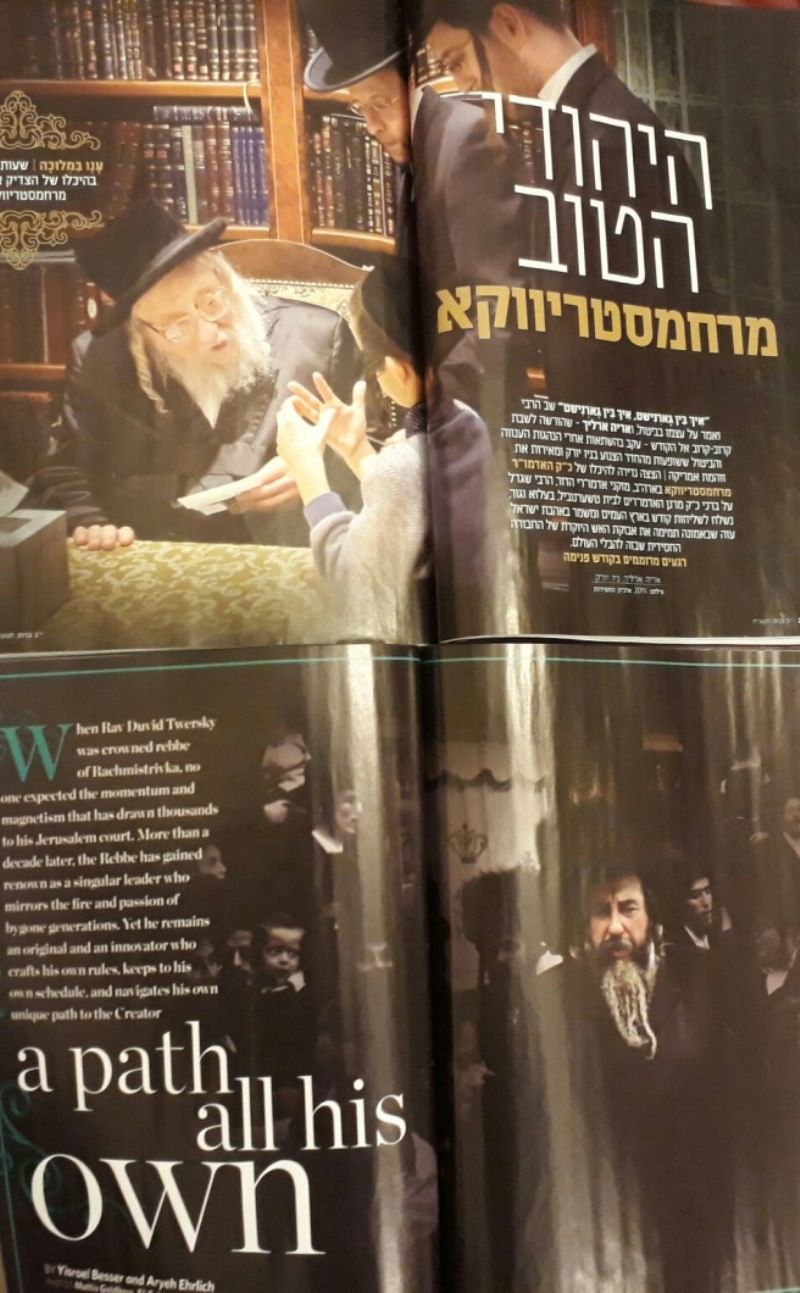אפרופו ‘משפחה’ באנגלית, קבלו שני קטעים מעניינים: סיפרנו לכם קודם שבפינת האדמו”ר המעניין במגזין מופיע ראיון עם האדמו”ר מרחמסטריווקא-ארה”ב, אולי יעניין אתכם לדעת שבמשפחה באנגלית כתבת הענק היא דווקא על האדמו”ר מרחמסטריווקא-ירושלים. על שתיהן, באופן מוזר כלשהו, חתום אריה ארליך (באנגלית יחד עם ישראל בסר). לא הצלחנו להיזכר מתי הופיעה הכתבה המקורית ב’משפחה’ בעברית, לפני שתורגמה לאנגלית, על הרחמסטריווקא הישראלי, אבל כן נזכרנו שאך בחג הקודם, היה הרחמסטריווקא “שלנו” בשער ‘בקהילה’.