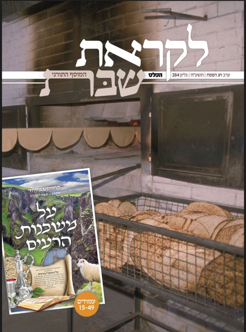המוסף החביב עלינו, המביא דברי תורה וכו’ על החג מרבני הפלג ובכלל, כמו למשל מהרב אלישיב זצ”ל ועוד. חוץ ממדור החידות התורניות שאנחנו מתים עליו (חידה לדוגמא: היכי תמצי שבאותו כזית מצה מקיים גם מצוות אכילת מצה, וגם עובר על איסור חמץ. התשובה בעמוד 65 במוסף. לא נהרוס לכם), מופיע הפעם גם פרויקט “על משכנות הרועים”, שמוקדש לדברי תורה מחברי המועצת החדשה של ‘הפלג’, פלוס דברי ההספד שמסרו על הרב אוירבאך זצ”ל.