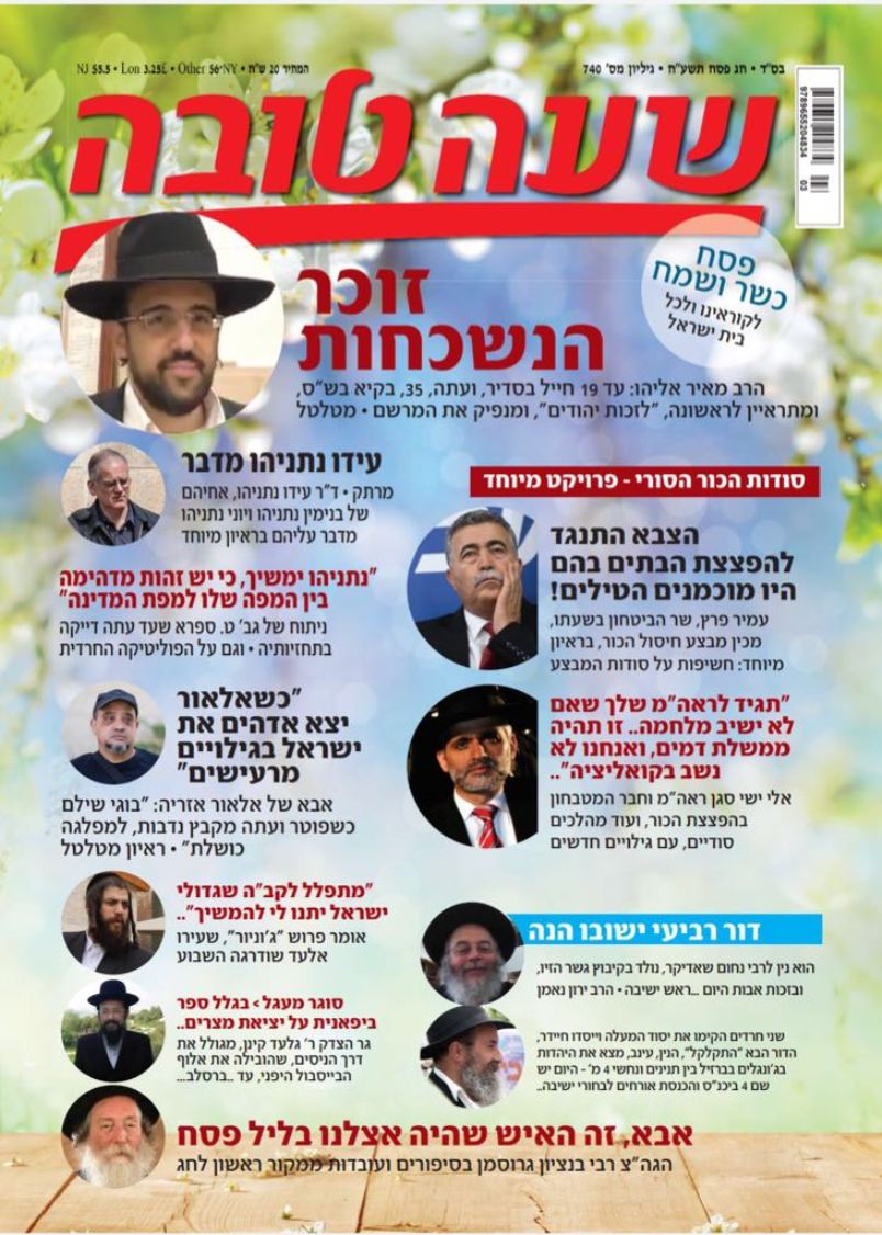 כאן לא עשו לנו חיים קשים, וכבר מהשער נתנו לנו את האפשרות לעשות מהם צחוק. עזבו אותנו. הביטו בעצמכם בשער: זה שער זה? אין כתבת שער, אין כתבה מרכזית, רק בלגן-בלגן-בלגן בעין. ומי בכל זאת בולט בשער? אדם לא מוכר, הרב מאיר אליהו, שכתוב שחזר בתשובה בגיל 19 והיום בקיא בש”ס. זה הסיפור המרכזי של ‘שעה טובה’. כמובן, אין תמונות הגיוניות שלו, אלא כמה מטושטשות מהיוטיוב או משהו. יותר מזה: בדאבל הפותח יש תמונה ענקית של הגר”ג אדלשטיין במסירת שיעור לתלמידים, וחשבנו שנגלה בכתבה כי אליהו האמור הוא תלמידו או מקורבו, אבל לא מיניה ולא מקצתיה. היא פשוט סתם שם כי לא היתה תמונה איכותית יותר למרוח בדאבל. כמובן שהכתבה גם לא מספרת את סיפורו המלא, איך יכול להיות שכך יהיה אם היא עשויה – ככל כתבות המגזין והמוסף – בראיונות של שאלה-תשובה, שאלה-תשובה. למזלו של ‘שעה טובה’ שבועיים לפני פסח הותר לפרסום סיפור הפצצת הכור הסורי, וכך יכלו לראיין, שבועיים אחרי כולם, את שר הביטחון דאז עמיר פרץ ואת – איך לא! – אלי ישי.