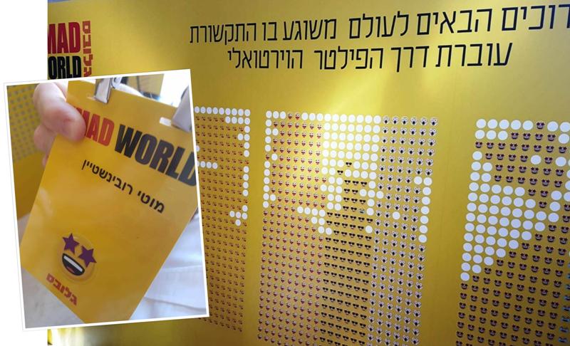 ובחזרה לוועידה, לאחר שהנפקתי את תג הזיהוי, נכנסתי לאולם קבלת הפנים. מצד ימין עמד “קיר מדבקות” עם אלפי אמוטיקונים, ומצד שמאל מארחת שביקשה מאיתנו לגשת לקיר, לבחור “מצב רוח” ולהדביק על התג המזהה. הקיר היה נחמד והעניק נופך וצבעוניות להתחלה טובה. בחרנו באמוטיקון עם עיניים נוצצות לנוכח האופטימיות הנדירה בה היינו שרויים.
