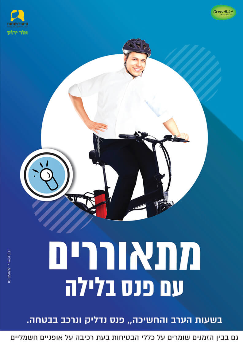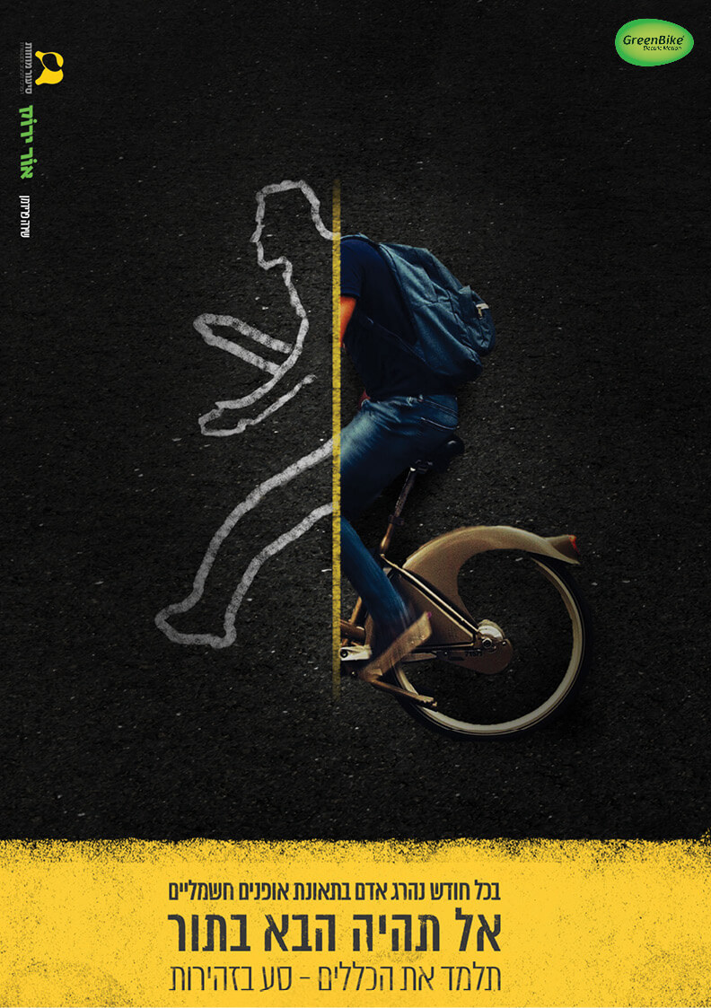הזוכה בתחרות, יהודית צאל, התייחסה בסדרת הכרזות שעיצבה לנושא חשוב: לכביש יש שפה, ועל רוכב האופניים ללמוד אותה. “לרבים מרוכבי האופניים החשמליים אין רישיון נהיגה, והם לא מכירים את חוקי הכביש”, הסבירה צאל את האסטרטגיה שבחרה ואת המסר שביקשה להעביר. “אם רוכבי האופניים החשמליים ילמדו את ‘שפת הכביש’ וישתלבו בתנועה כרוכבים מקצועיים, נוכל למנוע הרבה אסונות כבדים”.