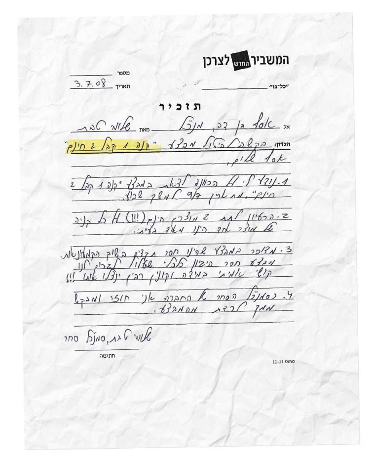 לפני כמה חודשים רץ במיילים דיוור ישיר של מקאן דיגיטל במסווה של תזכיר פנימי שכביכול דלף לאינטרנט ממשרדי הנהלת המשביר. התזכיר נכתב על ידי “שלומי טבת” ויועד לאסף בן דב, מנכ”ל משותף במשביר לצרכן.