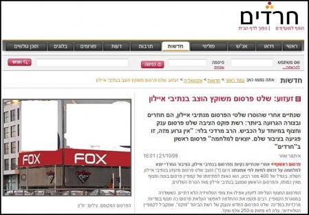 רשת חנויות האופנה FOX (גברים, נשים וילדים), העלתה שלט חוצות ענק באיילון עם פרסומת פרובוקטיבית, ופרובוקטיבי זה עניין יחסי. את פרטי התקרית אני לא צריך להזכיר כי לדעתי, כולכם, גולשינו היקרים, נחשפתם לזה אם באתרים חרדים – ובחרדים בפרט – אם באתרים מובילים אחרים, כמו הפורטל של ידיעות אחרונות, האתר הרשמי של היומון הכלכלי דה-מרקר ואחרים, שהתבססו איך לא, על ספין שדאגו להכין מבעוד מועד העיתונאים המקוונים החרוצים, שמגדירים את עצמם – ואת עצמנו – חרדים. נו שויין.