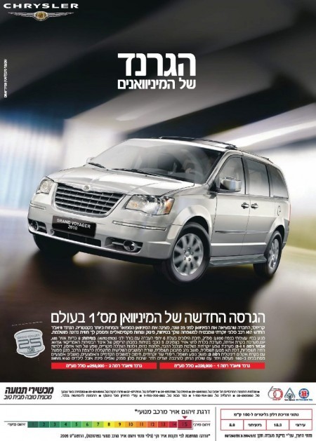 טויוטה מוכרים לנו רגש וקרייזלר פינוק. הבריף של טויוטה מדבר על רגש אבהי, על רוגע, על מה שהכי חשוב לנו (ילדים כמובן), וילדים רגועים – זה טויוטה ורסו. ילדים אמרנו, לא ילדות. הרי מדובר במגזר חרדי. נו, ומה הבעיה? מסתבר שכל הילדים בשכבת גיל זהה. צריך להיות קטנוני כדי לשים לב, אולי, אך נדמה כי בעל הרכב בורך בחמישייה בריאה, או בשלישיית מתוקים ואחרי שנה תאומים מחוייכים. ואם נהיה מציאותיים יותר – ייתכן ובעל הרכב משמש בסך הכל כנהג הסעות שמסיע את הילדים לבית הספר. סליחה, לחיידר. גל-אורן ניסו איכשהו לעמוד במשימה, והמודעה סבבה. ניכרת עבודה מאומצת וחשיבה רבה בנוגע לעיסוקם של כל אחד ואחד מהילדים. ואיך אפשר בלי להתייחס לגברת קרייזלר? ובכן, כמה חבל שהחוק מחייב אתכם לציין כמה דלק הרכב שלכם זולל (בטירוף) ועד כמה הוא מזהם אוויר (זיהום מקסימאלי).
