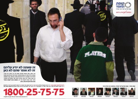 אני לא יודע עד כמה אתם נחשפים לפרסומות מהמגזר הכללי, אבל יש פרינט מצויין של אדלר חומסקי למפעל הפיס שבו רואים מלא אנשים ברחוב או על חוף ים, וכמה בודדים עוטים על פניהם מסכות של הזוכים בלוטו כשהם נטמעים בין שאר הקהל. והקופי, כמה מפתיע: זה שאתה לא יודע עליהם, לא אומר שהם לא כאן…