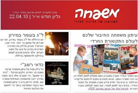 ניוזלטר משעמם מאוד ובלי תוכן של ממש. לומר שדרכו אפשר להכיר את המגזר החרדי, זה פשוט לעג לרש.