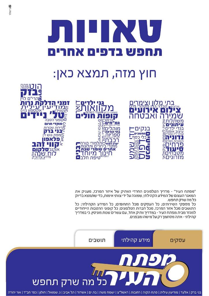 לאחרונה עלה קמפיין של מפתח העיר, המתחרה הישיר של דפי הקהילה. לא היה במודעות שום דבר מיוחד, ומישהו שם נלחץ מהקמפיין של מגזרים (שזכה בתואר הנכסף: הקמפיין שעשה לי את השבוע).