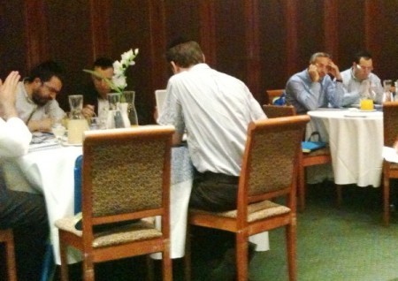 יחיאל סבר, פרשן לענייני הלם ותדהמה ביומון יתד נאמן, נצפה בעודו שולח חומרים מן הוועידה לעיתון יום ליום. אין צורך להסביר לכם את חומרת המעשה. מצד אחד, אוי לנו מיום הדין, אוי לנו מיום התוכחה. מאידך, יופי. לא משנה מה השקפת עולמך, אתה עוזר לעמיתך למקצוע (כשאתה יכול). אז בואו נבטל את העניין של אוי לי ואוי לי ונפרגן הפעם לכולם.