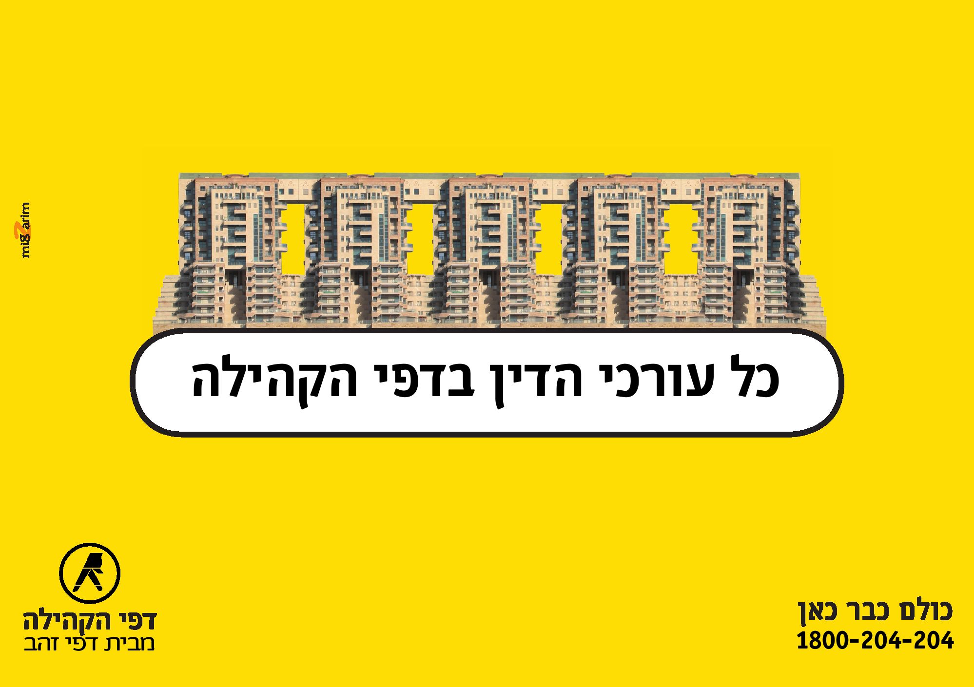 ועוד משהו. היה בהחלט מספיק משפט קצר יותר: כל עורכי הדין. ורק למטה את לוגו דפי הקהילה. לימדונו רבותינו: קצר יותר, חזק יותר.
